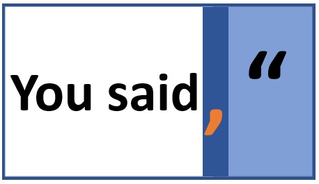 TIP: When a speaker tag follows a speech, a comma (or other punctuation) marks the end of the speech. This tradition is widely followed, even when quotation marks aren’t used. It doesn’t matter whether the tag uses noun-verb (“Mary said”) or verb-noun (“said Mary”) order.